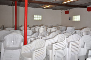 Stolene er plast stabelstole, så de er nemme at flytte rundt med. De kan nemt transporteres i en trailer eller lille varevogn.